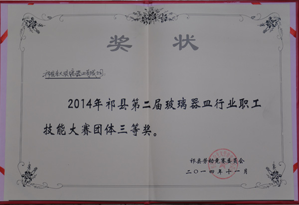 2014年被“中國(guó)日用玻璃協(xié)會(huì)授予高腳帝王杯、公爵杯榮譽(yù)稱(chēng)號(hào)”
